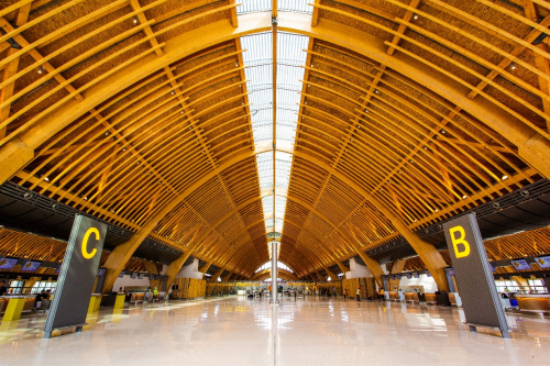 航站楼设计采用30米跨度的胶合木拱构成的波浪形穹顶,呼应着麦克坦岛周边的海洋波纹。15米高的透明玻璃幕墙让空间通透开阔,既减少人工照明依赖,又展现出强烈的生态美学意识。