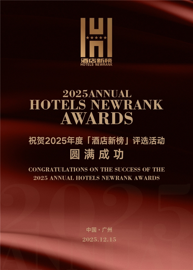近日,2025年度「酒店新榜」评选活动在广州顺利落下帷幕。作为酒旅业的权威盛典,本次活动的成功举办已成为洞察文旅行业发展趋势的最新"风向标"。除传统的表彰领域之外,本年度榜单还新增表彰"精细化运营管理,在地体验,国风文化"等领域深耕细作的标杆酒店与行业领航者,为推动文旅跨界融合,提质增效书写亮眼答卷。