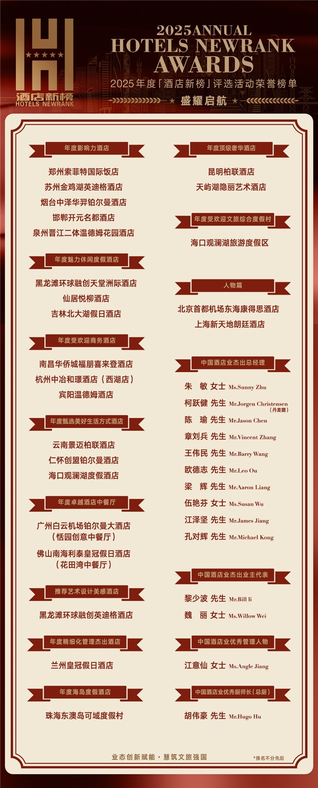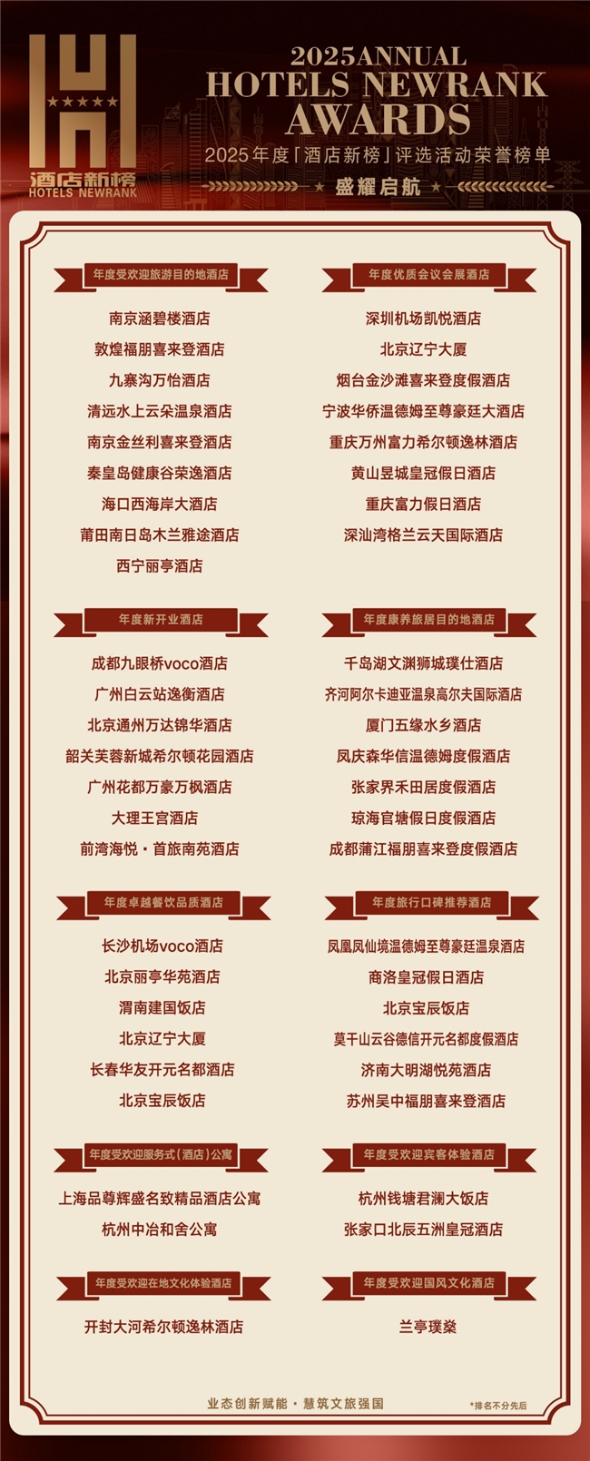 臻榜璀璨,盛耀九州!2025年度「酒店新榜」重磅出炉